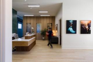 The polished white epoxy floors are a unique look that makes you feel FRESH when you enter. 16' ceilings with curved walls allow for any photographer to be limitless. Equipped with a large showerhead on the ceiling and a drain in the floor, you can even do rain shoots! High-end Skypanel LED lighting and camera equipment are available to rent for a separate fee. We have a very capable AV system including a projector, large TV and sound system available for your use.